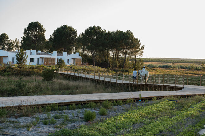Inaugurado no Verão de 2018, o Craveiral limou arestas ao longo do ano para agora oferecer um serviço cada vez mais próximo do sonho que Pedro Franca Pinto tanto batalhou para concretizar: o de criar um espaço sensorial de prazer e partilha, sintonizado com a natureza mas também com a comunidade. Um refúgio campestre sem pretensões ou formalidades desnecessárias, onde todos se podem sentir incluídos e, acima de tudo, relaxados. E por todos entenda-se mesmo todos: seja o hóspede que chega da cidade, um vizinho do monte ao lado ou um filho da comunidade local. É dessa mistura genuína e descomplicada que nascem serões autênticos como aqueles em que, à boa comida e aos bons vinhos que chegam do restaurante, se juntam os cantares alentejanos, entrecortados com uma ou outra piada secular (anedotas de alentejanos incluídas). Não que isso faça parte de um programa previamente definido ou estruturado. Afinal, a espontaneidade é uma das bandeiras do lugar. A autenticidade é outra. E ela revela-se no trato mas também no paladar. Com um conceito farm to table, o restaurante (desenhado pelo arquiteto Tiago Silva Dias) tira muito partido da horta biológica que encontramos logo à entrada da propriedade, mas também de produtos da região como a carne de caça, o porco preto (assado ali mesmo na esplanada junto à piscina) ou o peixe fresco da costa apanhado por pescadores locais. Não faltam sequer as pizzas biológicas confecionadas num forno a lenha dentro de uma parceria com a Associação Vila com Vida, que tem por objetivo criar oportunidades de trabalho e promover a inserção de jovens-adultos com perturbações do neuro-desenvolvimento. É o tal espírito inclusivo, que aqui não se fica pelo plano das intenções mas revela-se nos mais pequenos detalhes. E num tempo em que a oferta é tão ampla e tão vasta vão sendo os detalhes que fazem a diferença.