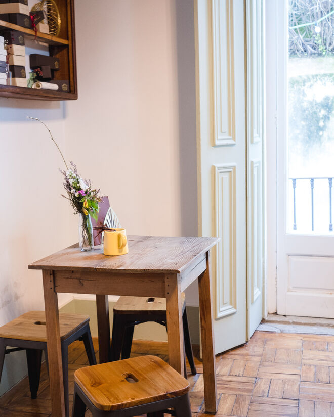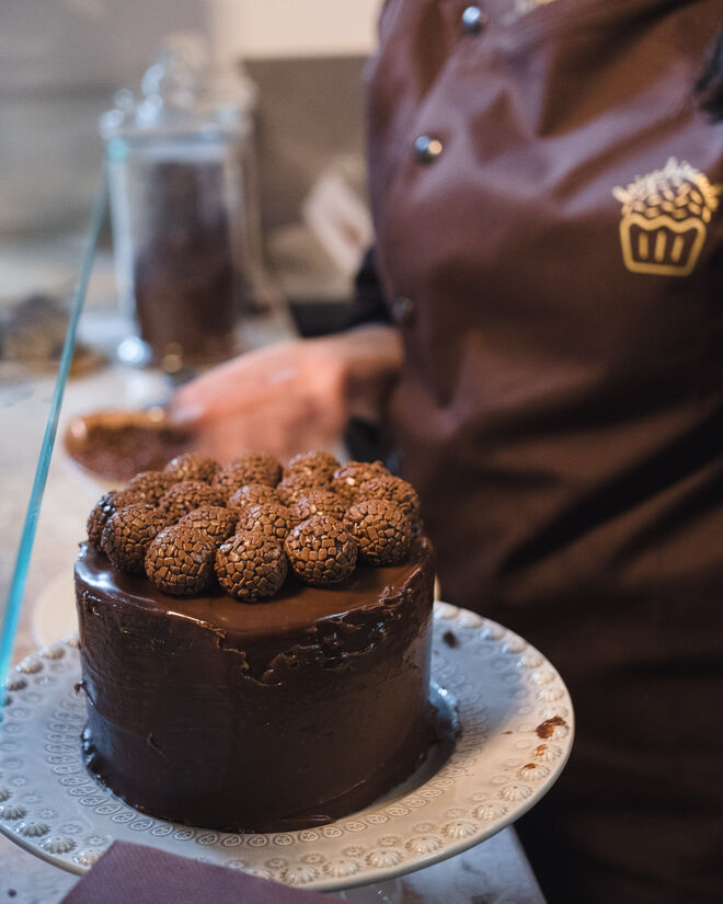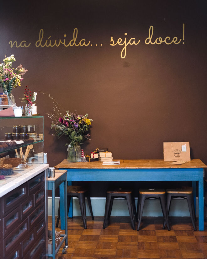 O espaço, que consiste numa sala de estar e uma pequena esplanada no exterior é inundado pelo cheiro a café e brigadeiro que nos transporta para outro mundo, com tons acolhedores e repletos de detalhes e sabores irresistíveis que vão além dos clássicos brigadeiros.