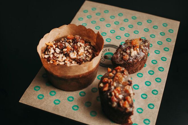 Há panetones de chocolate, azevias de batata-doce e bolinhos de Natal – tudo sem glúten ou açúcar.