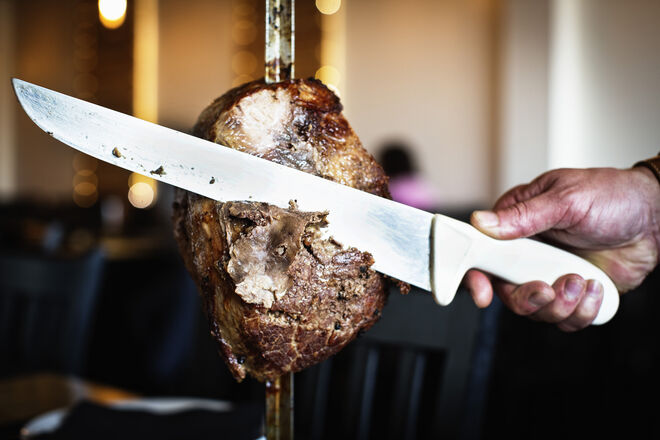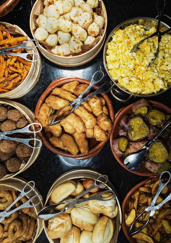 No menu, existem três tipos de rodízio: o tradicional que conta com doze especialidades de carne, como picanha, cupim, costela gaúcha o rib eye (custa €17,95 ao jantar); e o mini rodízio (com seis carnes, que custa €13,95 ao jantar) e o rodízio de picanha. Há ainda a opção do buffet normal, que inclui tudo o que lá está (custa €9,95). Ao almoço, os preços são os mesmos mas incluem bebida, sobremesa e café. Além das carnes, o buffet inclui todo o tipo de guarnições, desde as mais variadas saladas (de maionese à de polvo), aros de cebola, pão de alho e pão de queijo, batatas, croquetes, coxinhas de frango, beringela recheada, saladas variadas, misto de enchidos, e ainda uma zona de quentes onde há pratos como leitão ou pernas de frango. E, claro, couve mineira, feijão tropeiro e farofa. As sobremesas não ficam atrás na qualidade e há uma obrigatória: uma receita que Saulo trouxe do Brasil, um pavê de amendoim delicioso. A promessa? Daqui, nunca sairá com fome.
