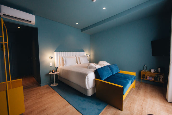 Totalmente restaurados, os pisos dos quartos mantêm, ainda assim, alguns elementos da estrutura original que remetem para os interiores das típicas casas da baixa lisboeta. Dos 35 quartos do Esqina Cosmopolitan Lodge, 15 são standard, 9 deluxe e 11 superiores, e há alguns deles com uma vista soberba sobre toda a baixa, e sobre a ponte 25 de abril. Há ainda a particularidade de a "arte" ter invadido as paredes do espaço Urban Lodge. "Todas as obras que estão nos quartos estão à venda. A ideia é promover o trabalho de artistas emergentes, como Cécile Mestelan, Vasco Futscher Pereira, Pedro Matos."