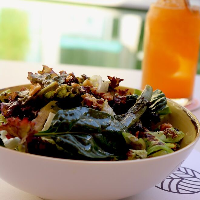 Todos os pães são feitos na casa. As massas-mãe biológicas são preparadas com farinhas moídas em moinho de pedra, e transformam-se em vários pães, como o rústico, o de alfarroba, o de abacate e cenoura ou o de nozes e sultanas. Na cafeteria, é claro que o café também é biológico, e servido com açúcar de cana e de coco.