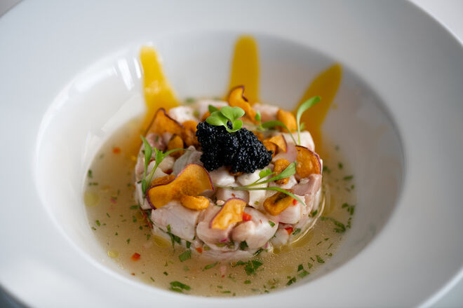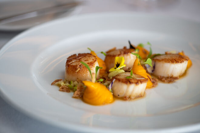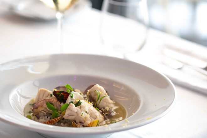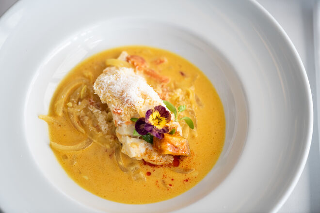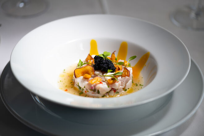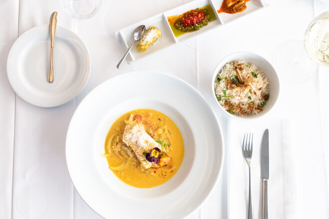 A primeira sensação é de que estamos em casa. A segunda, quando nos chega à mesa o primeiro dos novos pratos da nova carta, é a de que vale mesmo a pena celebrar uma década desde a inauguração do restaurante. Trata-se de um ceviche de peixe branco com molho de coco, lima, limão e coentros que acompanha com batata-doce e manga (€16): é picante, sim, quente e aconchegante, rico sem exageros. A carta concentra-se no que vem do mar, ou seja, há muitos mais pratos com peixe do que de carne, uma justa homenagem ao que há de melhor na costa portuguesa. Seguem-se umas vieiras em beurre blanc de lima e tártaro de maçã (€15). Como não era possível retirar o já icónico caril de caranguejo da carta, o chef juntou-lhe um lombo de garoupa em molho de curcuma com arroz basmati. E por falar em reinvenções, sugerimos que prove a reinterpretação da canja tradicional num arroz com amêijoas. Entre as propostas de carne, destaque para o novo rib-eye maturado com legumes assados e puré de batata trufado (€56 para dois).