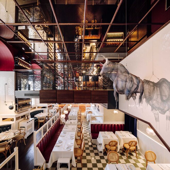 Ao sentarmo-nos na mesa deste novo restaurante no Chiado, em Lisboa, os olhos fixam-se na placa de metal com um botão a dizer "Press for Champagne". O intuito era comer carne, mas começar com champagne nunca é mau.