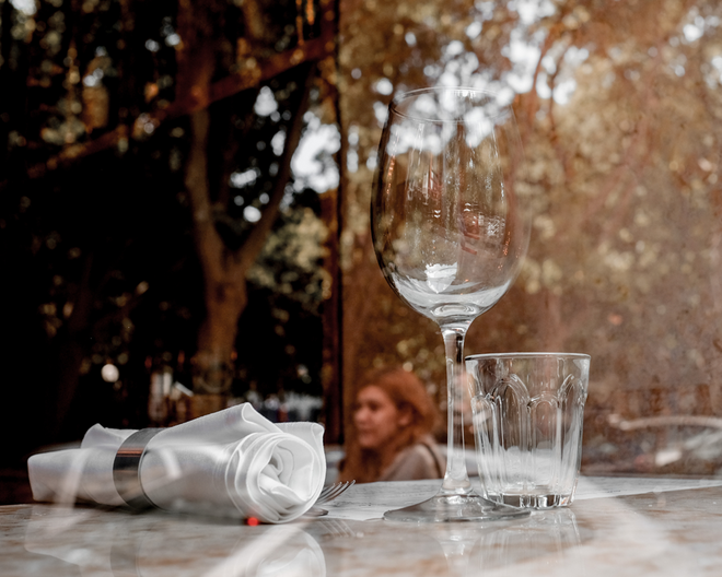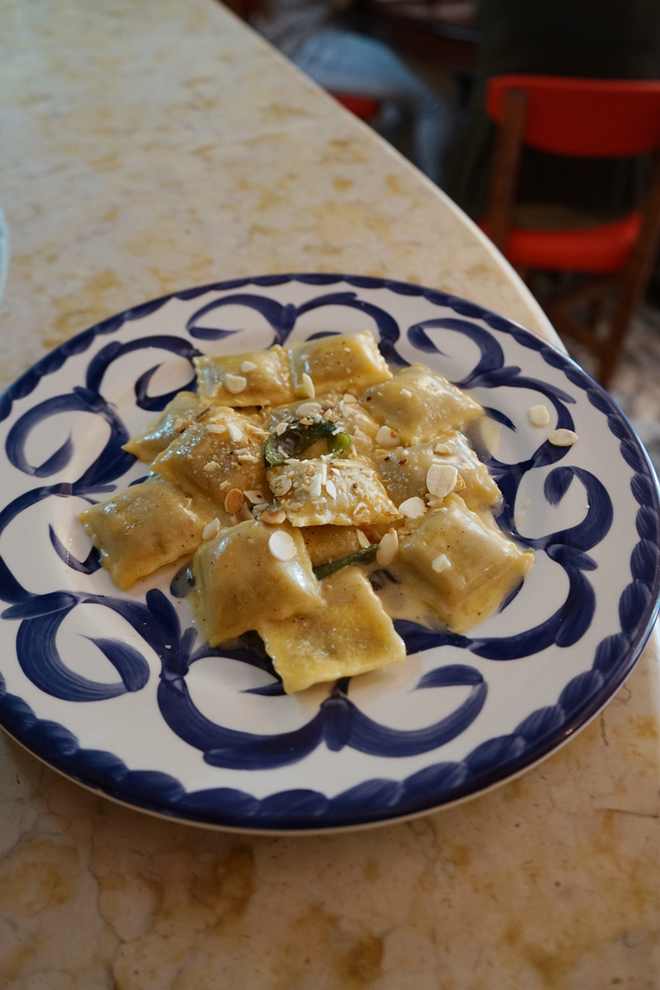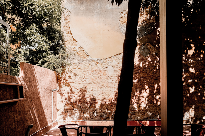 Mal entramos invade-nos a sensação de se estar em casa – se por um lado há retratos antigos nas paredes, há também mesas de madeira que remetem para um ambiente caseiro, a luz é pouca e em tons de vermelho, e há uma série de rostos sorridentes que nos dão as boas vindas de forma amistosa. Com capacidade para cerca de 50 pessoas, o Memoria convida a uma refeição que se prolonga sem pressa, como uma verdadeira família italiana. Com um espaço exterior que será remodelado em breve, e onde nogueiras caem sobre um harmonioso pátio, este recanto é uma fuga à azáfama da cidade.