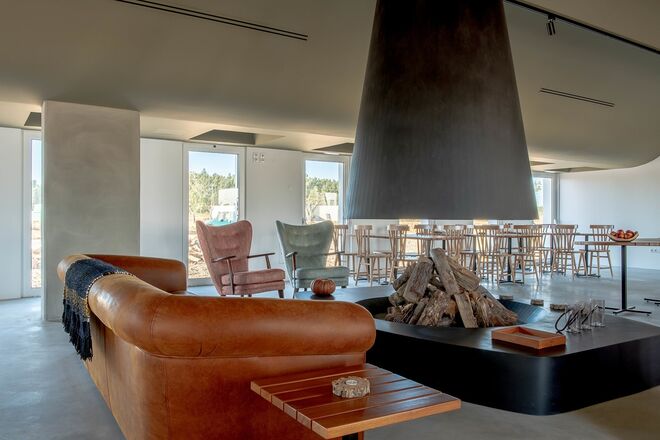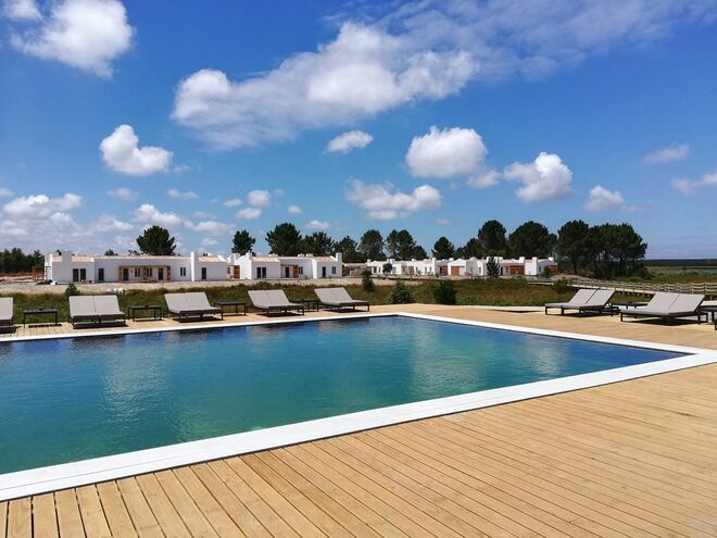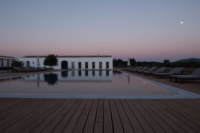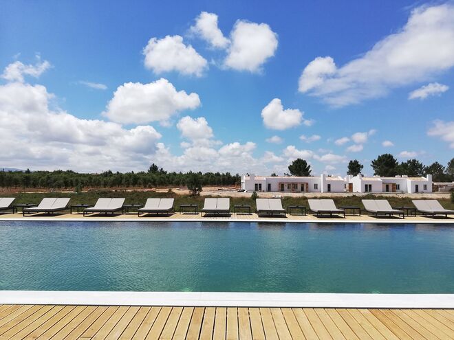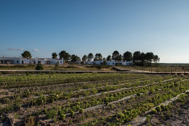 Logo à entrada deparamo-nos com o restaurante, com um conceito farm-to-table, com cozinha regional e saudável, e ingredientes da horta. Tiago Silva Dias (o arquiteto que desenhou os restaurantes Alma e Tapisco, ambos do chef Henrique Sá Pessoa, em Lisboa) foi o responsável pelo projeto que conta ainda com três piscinas, um centro de bem-estar, com uma sauna revestida com cortiça, uma zona zen, com espaço para massagem, banho turco e jacuzzi interior. Há também um ginásio para quem não dispensa a prática desportiva, mesmo nas férias.