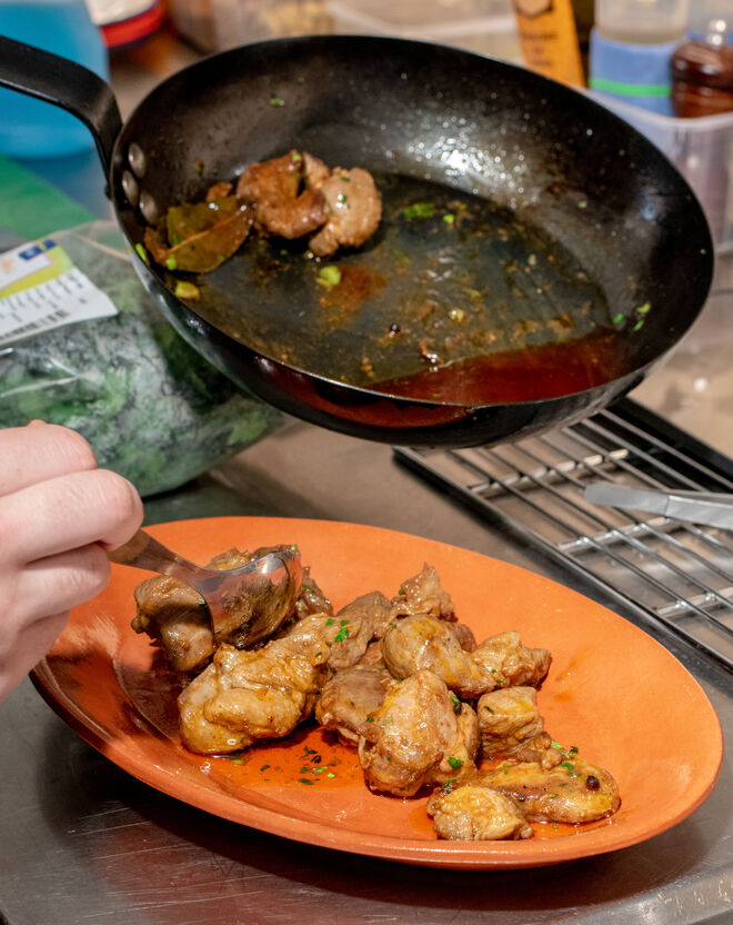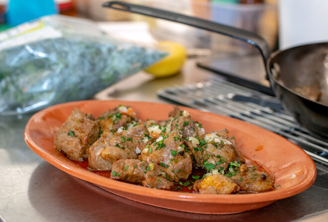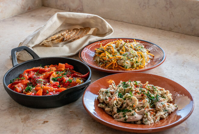 Da cozinha saem, assim, maravilhas da cozinha alentejana (e acima de tudo portuguesa) como os petiscos coelho de coentrada (€8,50), ovos com túberas ou espargos (€8), pimentos assados (€6,50) ou lulas com grão (€8). Há também propostas fora da caixa com paladares bem apurados como galinha acerejada (€7,50), pato de escabeche (€9) ou estupeta de atum (€7,50). E estão apresentados os petiscos. Há três pratos principais que podem fazê-lo saltar tudo isto (ou não) que são o já consagrado arroz de pato (€13,50) ou o sempre apetecível bacalhau com batata (€14). Como a tradição manda, não tem melhor fim de refeição que um "pijaminha". Peça-o e chegar-lhe-á à mesa o trio de encharcada, requeijão com mel e mousse de chocolate com avelãs regada com azeite.