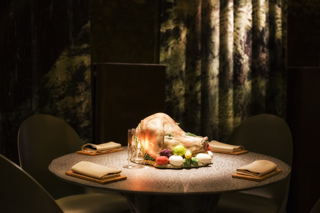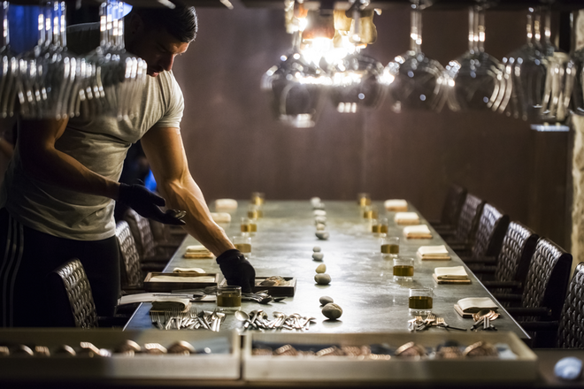 Primeira revelação: quando era criança, o pequeno Ljubomir não gostava de carne. Sim, é verdade, ainda que seja difícil de acreditar. Se por um lado é difícil imaginar um Ljubomir pequenino, por outro será ainda mais difícil crer que o homem que tantas vezes vemos fotografado ao lado de animais – vivos ou mortos - não gostava de carne. Ainda assim, é a mais pura das verdades. Tão pura como o amor que este homem de 41 anos acabados de fazer tem pela comida. É isso que fica uma vez mais evidente neste recém-inaugurado espaço na Rua Teixeira, no Bairro Alto, com um projeto de interiores assinado por Nini Andrade e Silva e minuciosamente acrescentado pelo próprio Ljubomir e a mulher, Mónica Franco, que aproveitaram as muitas viagens e variadas incursões em família para colecionar ideias e inspirações. O destino incontornável? A Bósnia, como seria de esperar. Terra natal do chef que se reconciliou com o passado para orgulhosamente trazer o país para a mesa: falamos dos obrigatórios pão Rosa (assim batizado em homenagem à mãe Stanisic, que o confecciona diariamente) e da ajvar (uma pasta de pimento e beringela, igualmente da autoria da matriarca), mas também de algumas das peças em ferro onde é servido este primeiro momento de 15 atos (servidos com um pairing de vinhos). Seguem-se pratos como o Charuto de Sarajevo (espuma de batata, pão de chá fumado e kupus), Great Balls of Fire (croquetes de romanesco) ou Green Book (espargos grelhados, manjericão e beurre blanc), bem desconstruídos pelos empregados que trocaram a formalidade dos menus de degustação pela atitude descontraída e pela informação certeira (esqueçam as descrições intermináveis que nos deixam de boca aberta – não de fome mas de sono). Mais do que certa, também, é a ausência de arroz integral no menu – não fosse este, no capítulo dos cereais, vegetais e plantas, o único ingrediente a não conquistar o palato viajado do chef que, sempre aberto a novas possibilidades, continua a colocar a curiosidade à frente da prudência. Mesmo depois de uma experiência limite em São Tomé e Príncipe, em que umas ervas lhe provocaram uma reacção alérgica que o ia matando. Sobreviveu para contar, sim, mas sobretudo para (continuar a) comer.