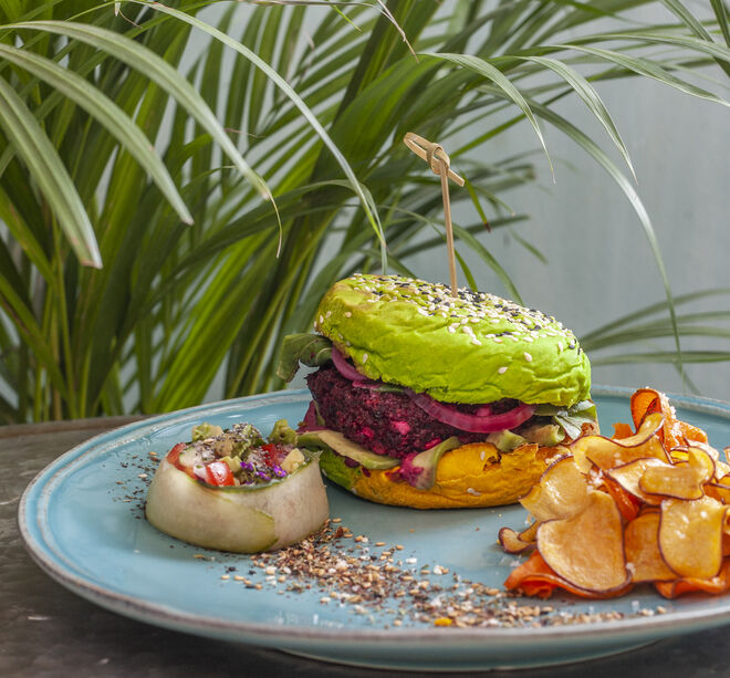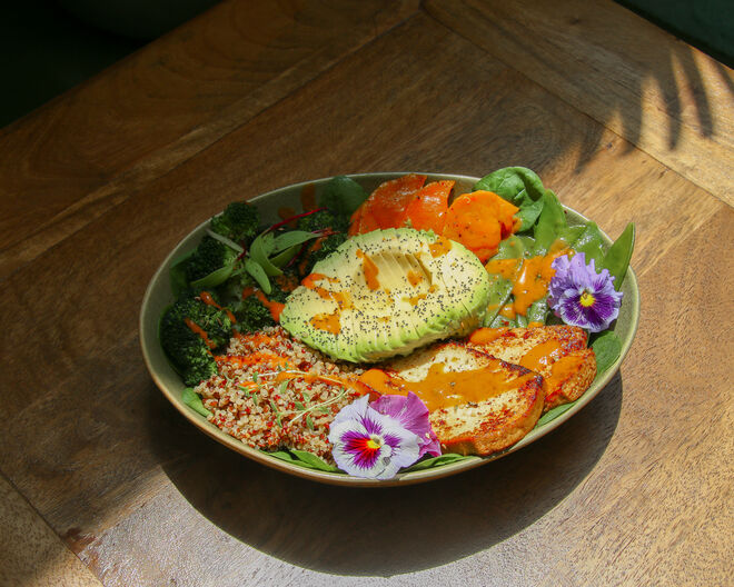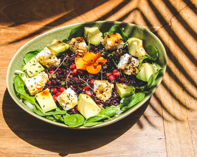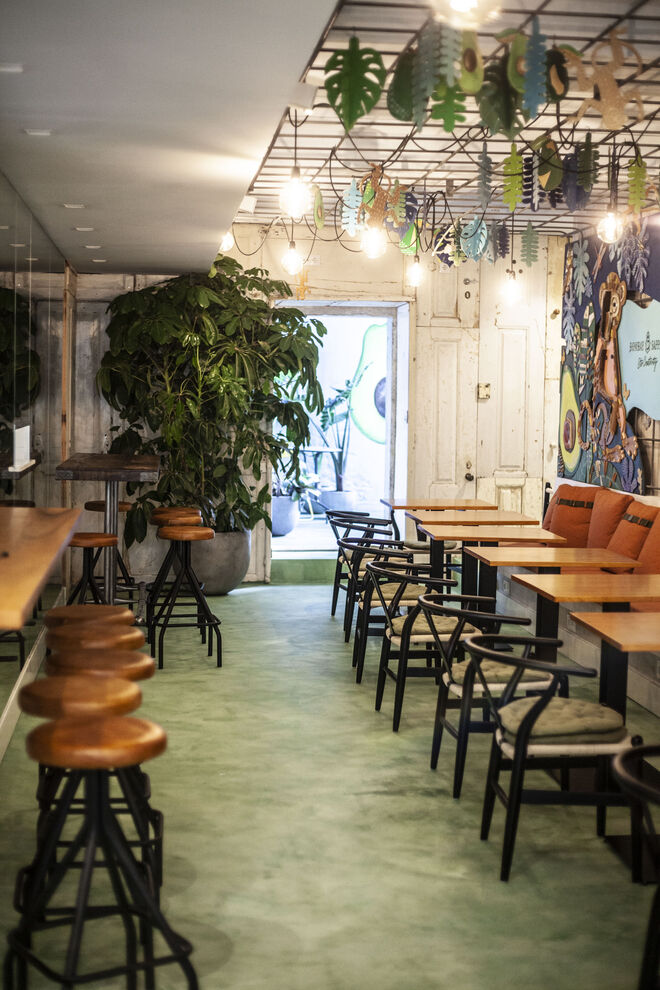 Na carta, saltam à vista as entradas improváveis de tempura de abacate com maionese de beterraba (€6,90), os spring rolls com abacate, cenoura, hortelã, coentros, pak choi, noodles de arroz, romã e manga (€5). Nas saladas, há que provar a Ahimsa bowl com mix de quinoa, abacate, mistura de vegetais, espinafres, abóbora, molho garam masala e tofu grelhado (€10,80). Há ainda os indispensáveis: as panquecas e as tostas. Sugerimos a Yummy Avo, com manteiga de amendoim, banana, abacate, nozes, sementes de abóbora e ganache (€6,70) e a tosta Earthy Brekkie, com cogumelos salteados, ovos escalfados, húmus de abacate, mix de rebentos, tomate seco, manjericão, salada e limão (€7,20).