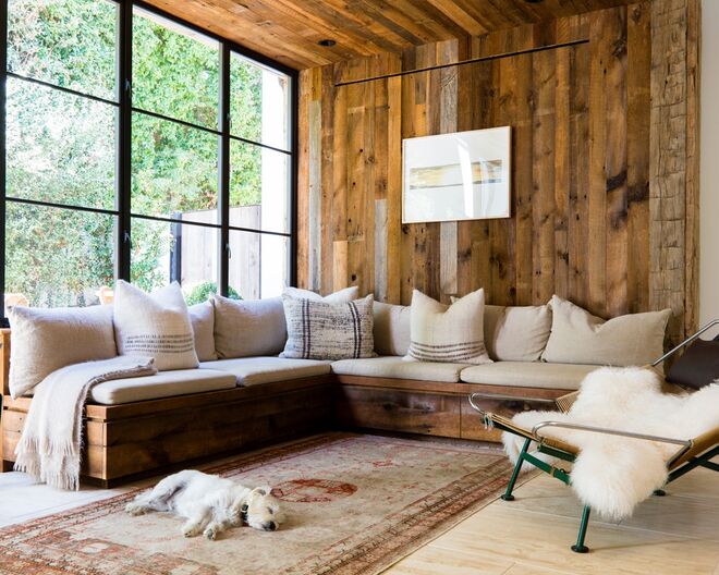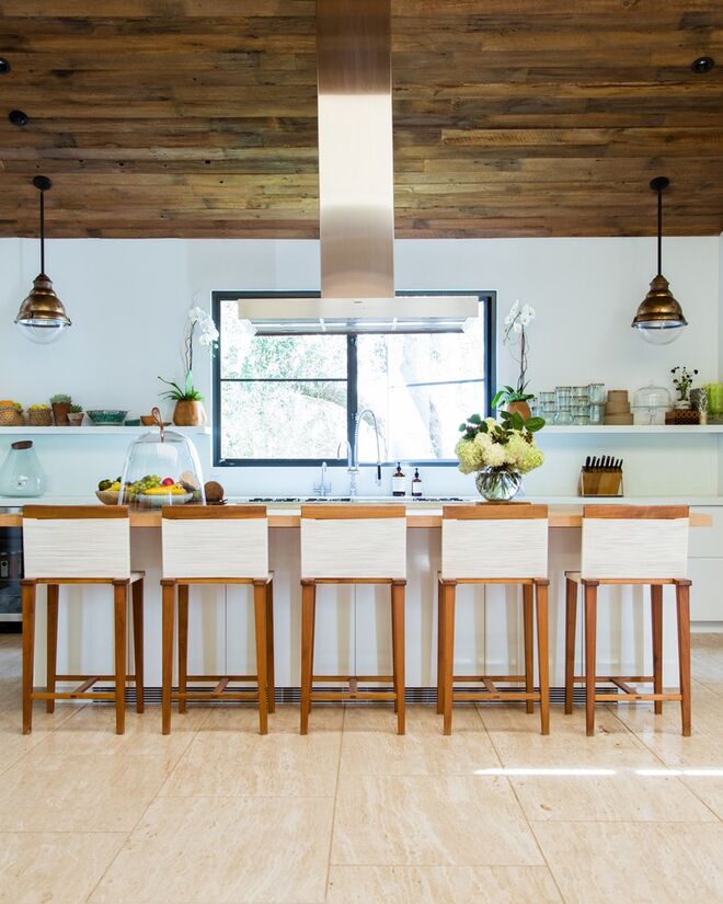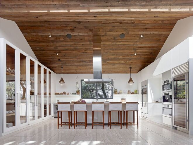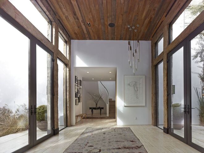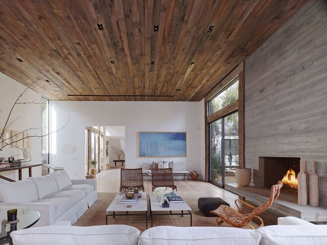 Decorada num estilo minimalista e repleto de pormenores em madeira, a casa da modelo no bairro de Beverly Hills, Califórnia, lembra as casas na montanha. Os tetos, as paredes e muitas das peças de mobiliário são feitos em madeira, o que dá à casa um toque confortável e ao mesmo tempo elegante.
