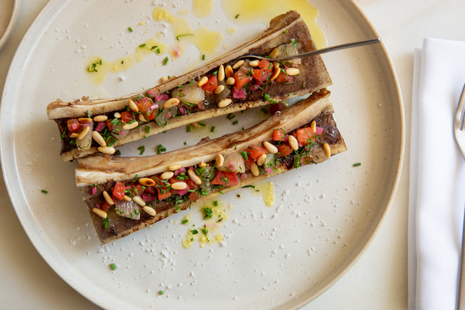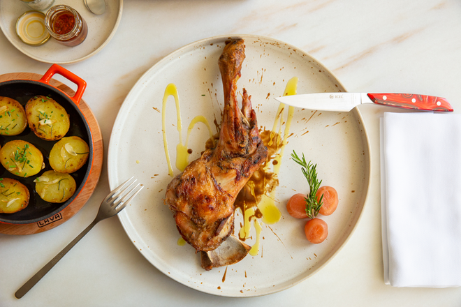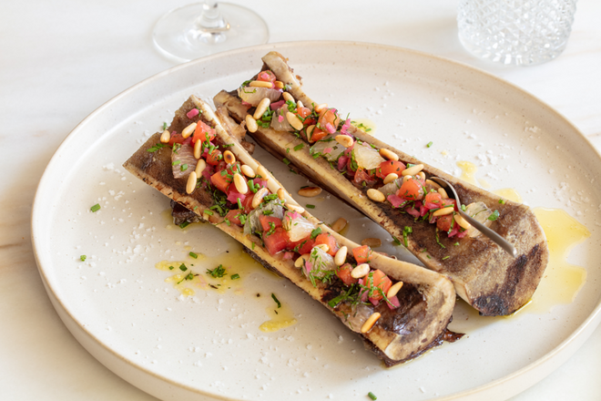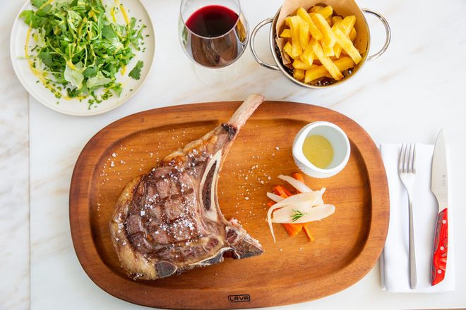 Situado em São Bento, o novíssimo espaço do chef Vitor Sobral é um convite a desfrutar dos sabores da carne, a par de outras iguarias que quase lhe roubam o protagonismo. Com um espaço decorado com elegância e modernidade, sobressai uma peça exclusiva de Bordalo II - um grande painel adornado com formas de legumes e fruta, no registo urbano que caracteriza o artista português. Como bom conhecedor da gastronomia portuguesa, o chef não desilude ao escolher para entradas (ou petiscos) como moelas grelhadas com pimentão da horta e piri-piri (€8,50), focinho de porco grelhado com creme de coentros, cebola avinagrada e azeite de trufa (€13,50) ou tutano de bovino no forno com limão, tomate, pinhões, alecrim e salsa (€9,20).