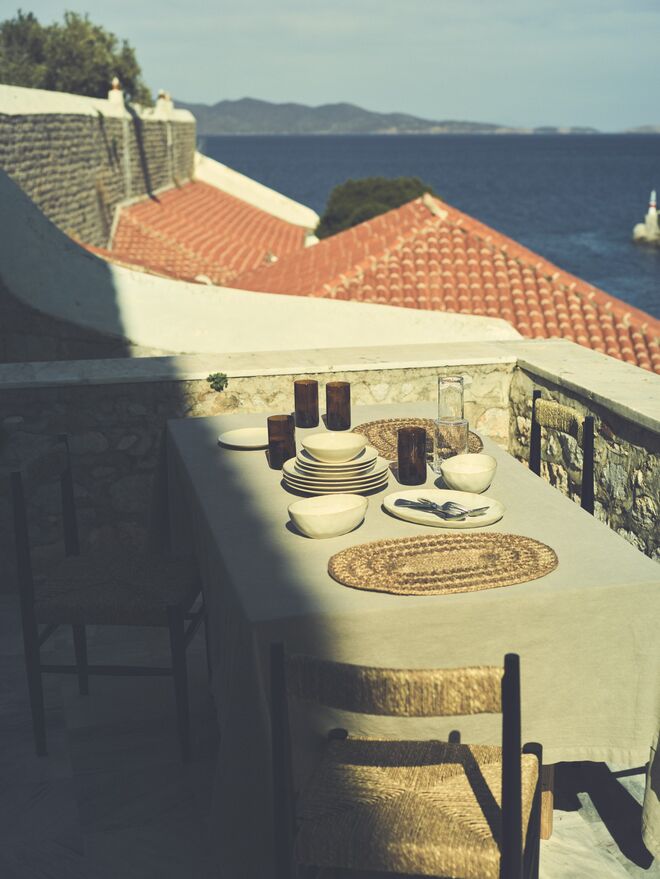 A nova linha da Zara Home transporta-nos para uma casa à beira-mar na ilha de Hidra, Grécia, o equilíbrio perfeito entre a frescura do mar e o calor do verão. Dominadas pelos tons terra, ocre ou azul, as peças privilegiam materiais e texturas orgânicas e dividem-se entre pequenos objetos como louças, toalhas e vasos, mas também algum mobiliário.