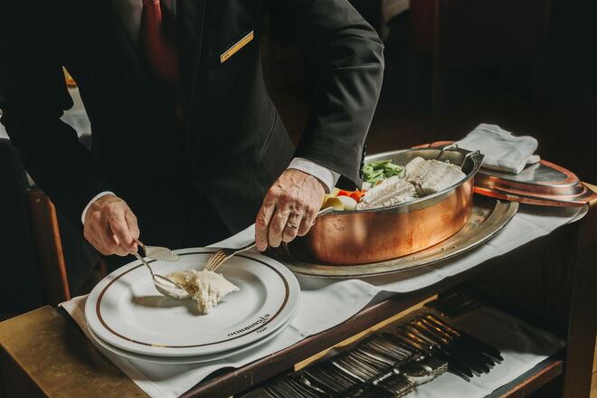 O chef executivo Ricardo Mourão sentou-se connosco à mesa e contou-nos como foi este novo desafio. "Foi um trabalho de pesquisa para tentar perceber o que na época se fazia. Pesquisámos em arquivo, vimos as receitas, fomos ver como estavam descritos os pratos para depois tentar idealizar o empratamento e encontrar os materiais utilizados na altura – tudo para que a recriação fosse a mais genuína possível", explicou, ressaltando que não havia fotografias do que era feito na época. Ricardo falou com chefs que estavam na cozinha desde o início, há 45 anos atrás. "Eles transmitiram-me mais ou menos como faziam as coisas, como empratavam e contei com a ajuda dos antigos chefes de sala também e até de clientes", confessou.