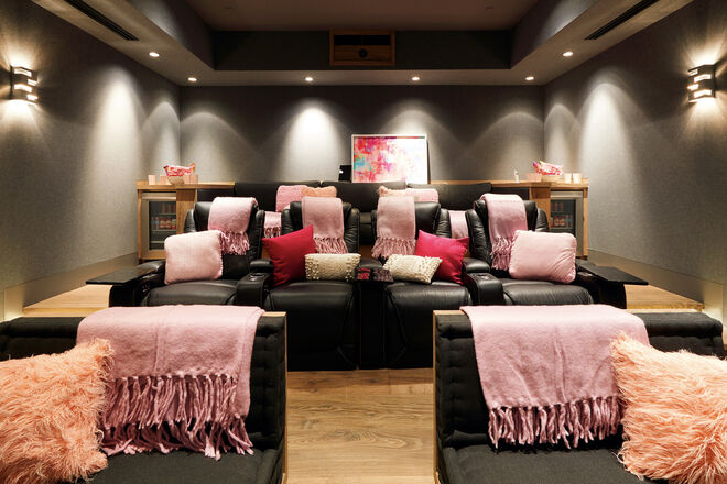 Nos intervalos, os hóspedes poderão desfrutar desta mansão de arquitetura contemporânea junto ao mar, com uma piscina infinita com vista para a costa da Califórnia, um escorrega na piscina, um cinema privado, um estúdio, uma zona para praticar desporto e para meditar, além do terraço para refeições ao ar livre e uma cozinha com a despensa cheia.