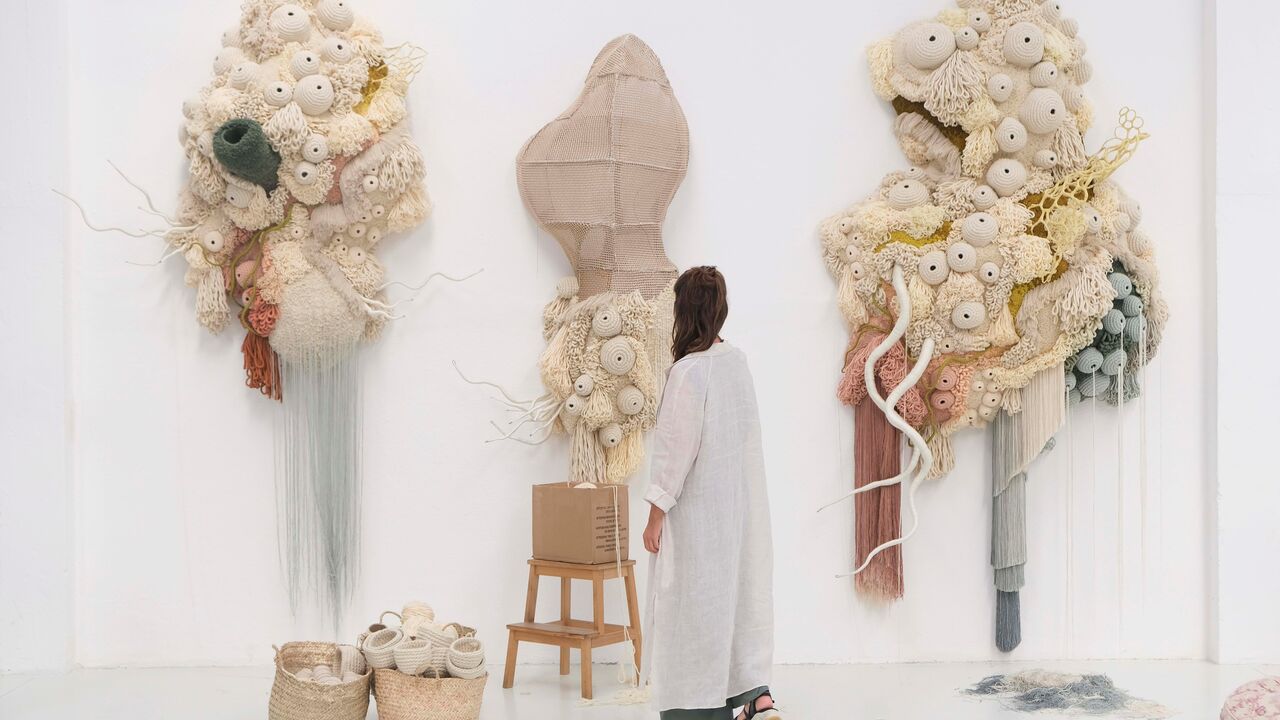 A artista portuguesa apresentou uma obra composta por três peças de grandes dimensões apoiadas numa estrutura metálica. Quando a questionámos sobre a forma como encarou o desafio de criar mais uma obra para a galeria, Vanessa Barragão revelou que houve coisas a serem melhoradas de uma edição para a outra. "No ano passado tinha criado duas peças para a Analora com muito mais cor, e que deram para perceber que era preciso algo mais fresh, mais com estes tons [de branco e pastel]", disse, explicando que tonalidades mais claras poderiam ser encaradas com mais leveza por parte das pessoas, e que isso poderia potenciar a procura. Sobre o processo de criação da obra, refere que "a base tridimensional é feita a partir de uma estrutura de metal soldado", que depois é revestida por uma tela própria com espaços entre si - denominada talagarça - na qual se interlaça a lã através da técnica de Esmirna. "Depois há outras manipulações têxteis que uso que não têm nome", afirma, confessando ainda que esta foi a primeira vez que usou a técnica antiga.
