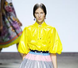 A contrariar os dias mais cinzentos, Mary Katrantzou apresenta-nos um universo cheio de cor e alegria, com inúmeras alusões ao mundo infantil, desde legos a livros de colorir.
